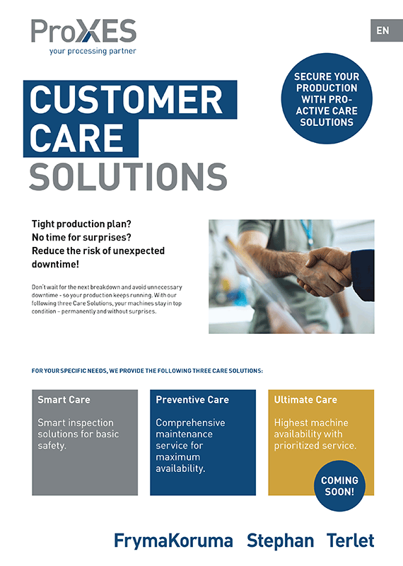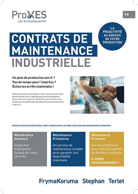 Si vous souhaitez en savoir plus sur les produits, les applications et les solutions ProXES, vous êtes au bon endroit. Vous trouverez ici des informations complémentaires sur notre technologie de traitement et nos trois marques ProXES FrymaKoruma, Stephan et Terlet. N'hésitez pas à télécharger nos brochures de produits et d'applications dans votre langue. Nous sommes désolés que toutes les brochures ne soient pas encore disponibles dans votre langue. Si vous souhaitez télécharger une autre version linguistique, veuillez cliquer ici pour l'allemand, le français et le mandarin.